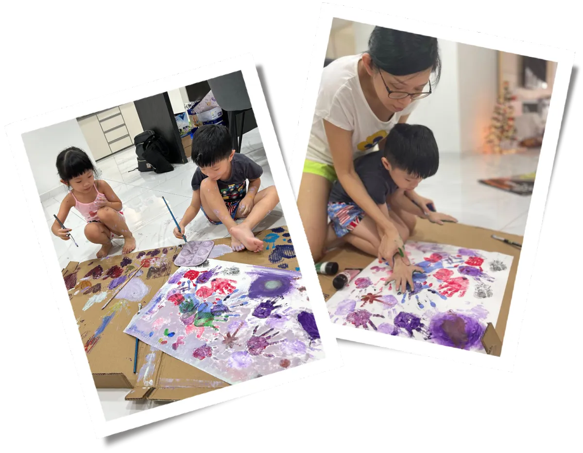 当我跟孩子玩很创意的游戏时,我的老公会明白我 做这个东西的原因,育儿路上就会比较轻松!